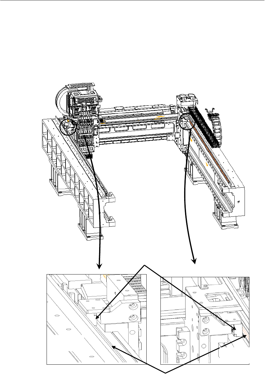 2.将Front与Rear Gantry的X、Y1、Y2轴慢慢移动至最大移动距离的同时,检查Linear