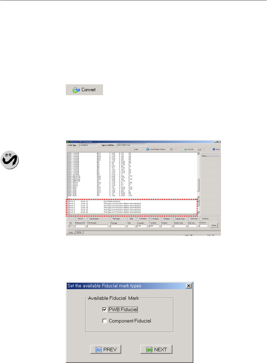 对所设置的CAD Data (辅助设计文件的转换)实行数据检查,如果存在错误,就在画面下