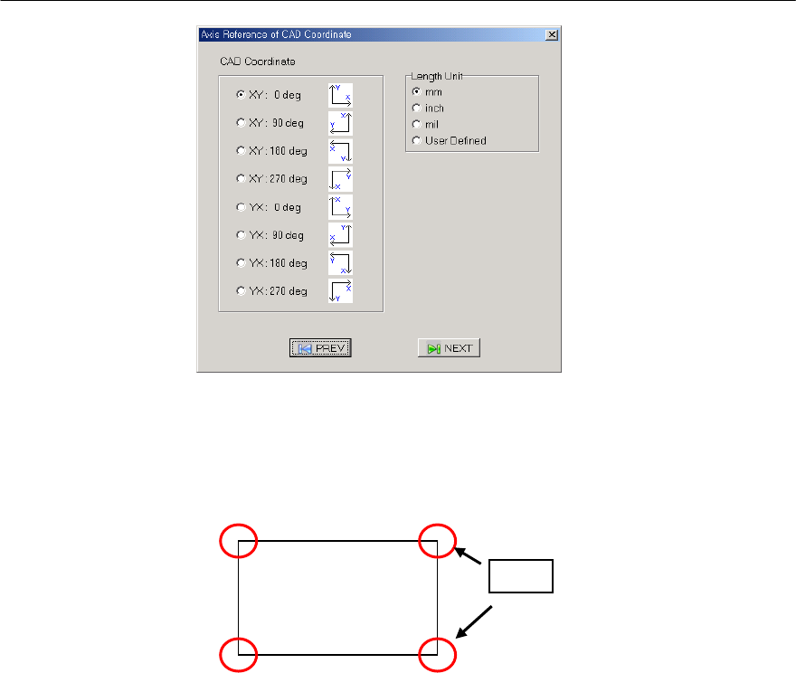 Mx Series Manual 1-10 图 1-6 设置 CAD Coordinate 及 Unit( 单位 )> • XY Origin( 原点 ) : 设置给出的 XY data( 数据 ) 的原点坐标 位置。以所设置的坐标为基 准, X,Y 值发生转换。(属于 未来设备的为左侧下端) 根据 PWB 原点的位置和 XY 坐标值的 ± 选择原点 • L e n g t h U n i t ( 长度单位 ) : 选择给出值的度…