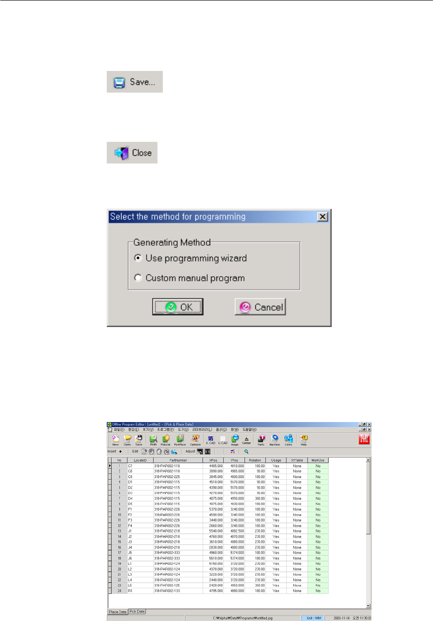 保存完了之后选择Close(关闭)图符,便显示关于选择程序设计开始方法的对话框。