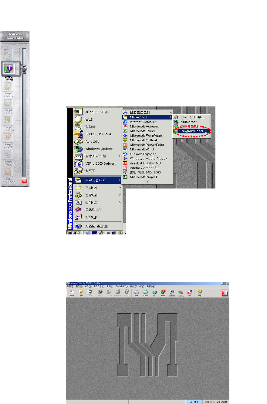 按Windows桌面左侧下端的开始按钮,选择程序₩Mirae SMT₩ Program Editor (程序