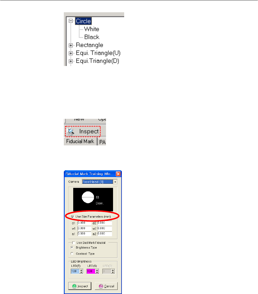 Fiducial Mark (基准标记)窗口选择Inspect Icon(检查),并对Mark进行检查。