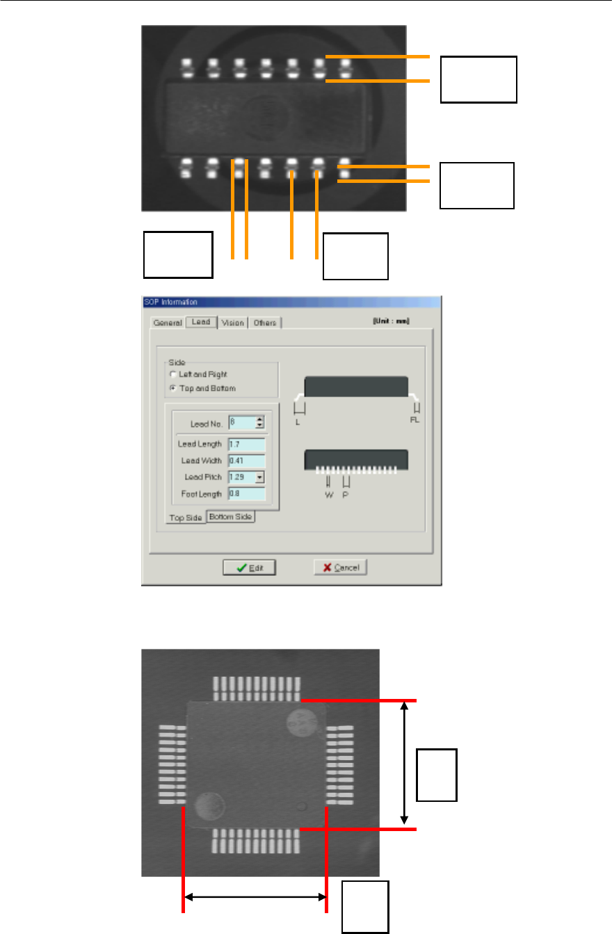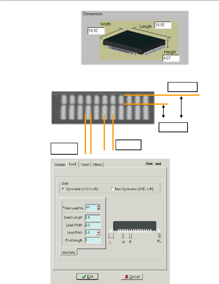 Mx Series Manual 1-30 [ 部件为 QFP(Quad flat package) 时 ] Width Length Lead Len g th Foot Len g th Lead Pitch Lead Width