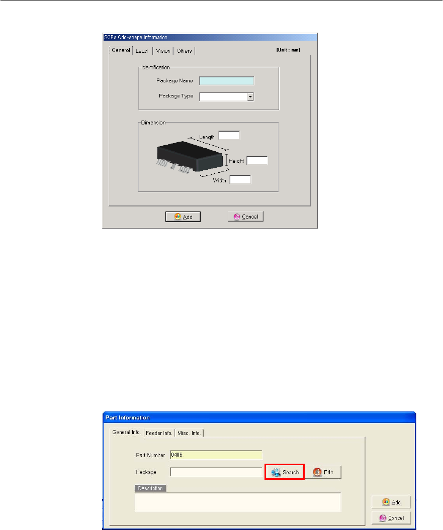 结束新部件的注册后,通过Part information/General/Package窗口进行DB注册