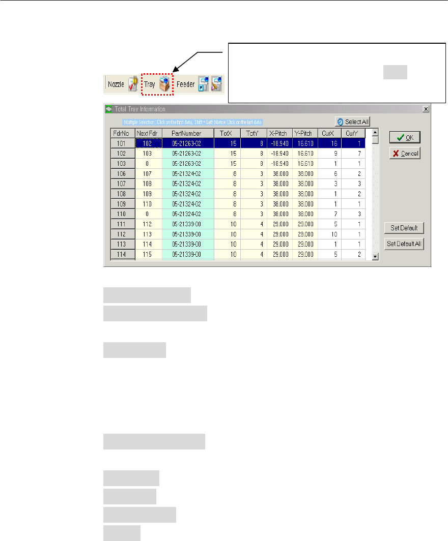 Select All(全部选择) : 是选择目前已经注册的全部Tray Feeder No的功能。