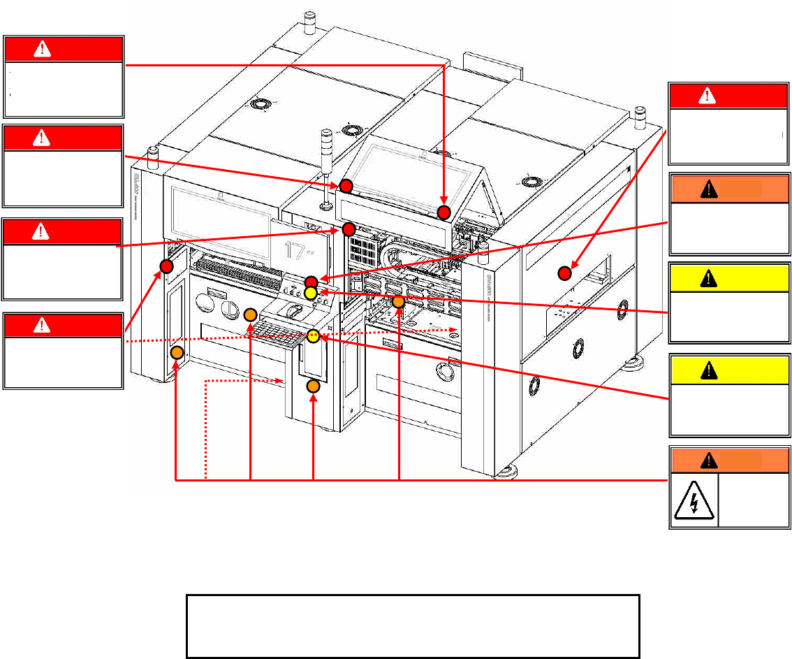 ▶ 为了装备的安全使用,贴有如下警告标签。