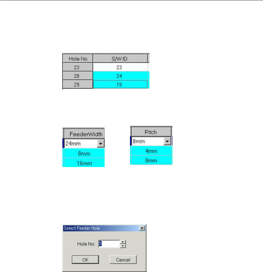 <Hole No , S/W ID> ※ 只对α-Feeder另行表示。对C-Feeder,用相同编号