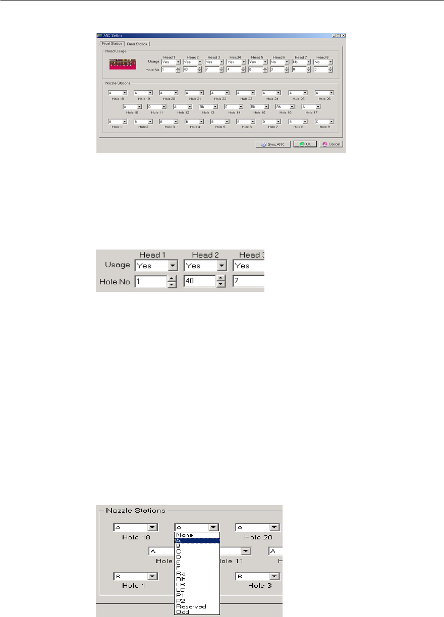 分别确认各ANC的Hole中使用的喷嘴及各Hole编号的Head使用状态。