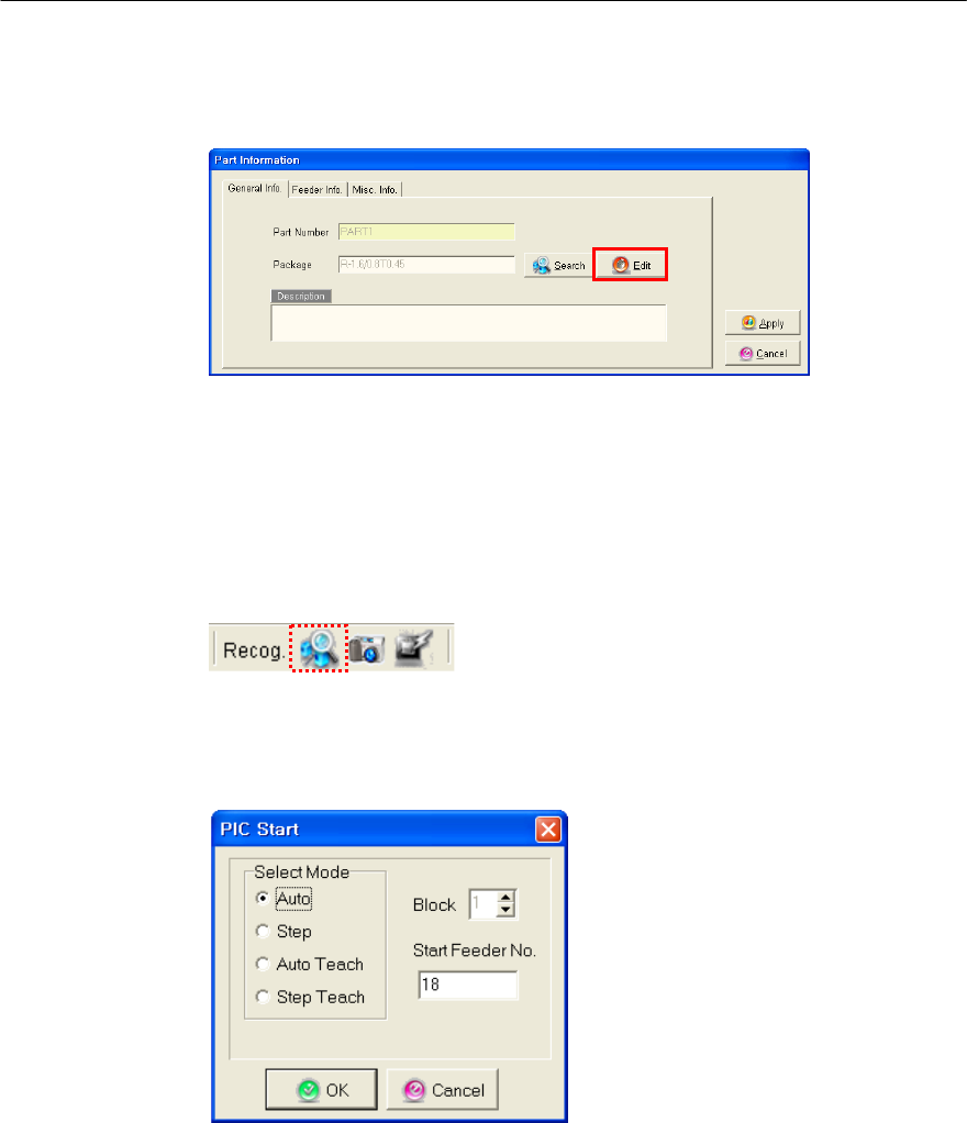 用鼠标器选择Place Tab中想要的贴装点后,再选择PIC Start (确认贴装点)功能图