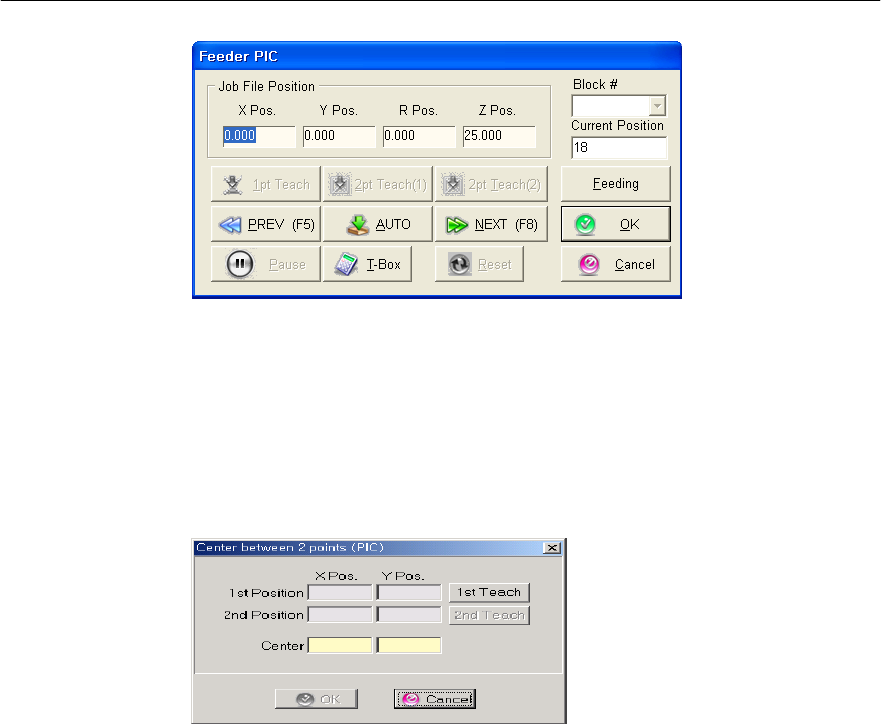 第 1 章 开始程序 1-77 图 1-70 PIC Running State 窗口 > • X , Y , R , Z P o s i t i o n ( 坐标 ) : 显 示框中设置的数据贴装点位置 • T e a c h ( 一点 Teaching) : 调出当 前的贴装点。 • 2 p t T e a c h i n g ( 两 点 Teaching ) : 进行两点安装点 Teaching (监视器尺寸,对角 线) 图…