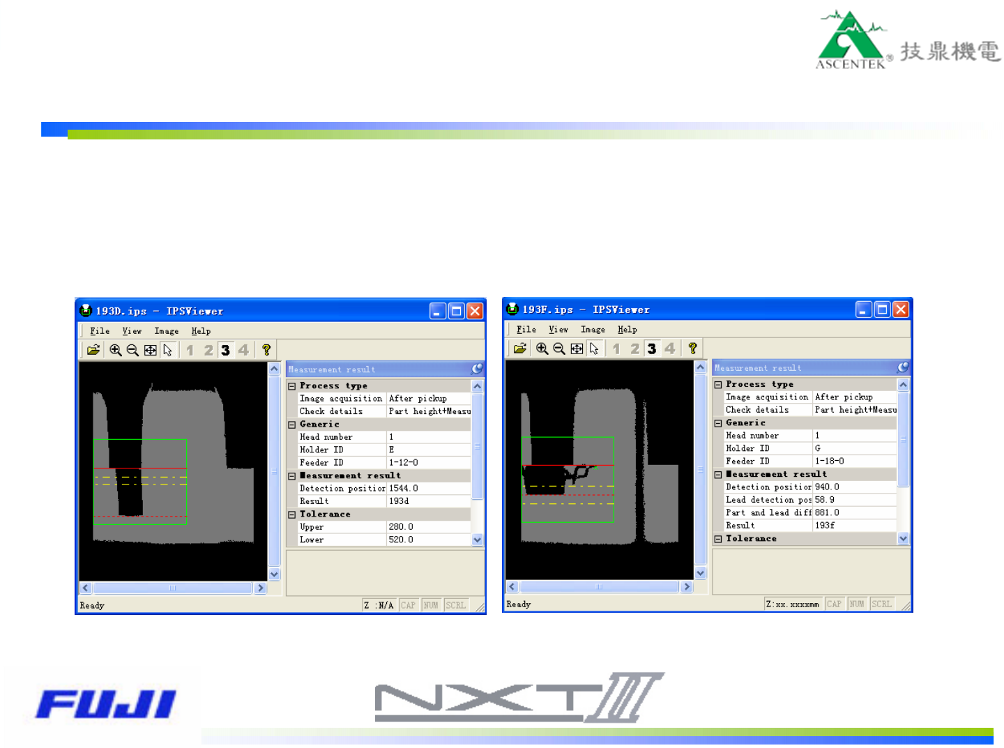 二、IPS常見問題 4.備註: 生產中常見錯誤為: D701/193D/193F:發生此錯誤時請在附屬軟件中查看錯誤影像以判斷是 螢光貼紙脏了(包括螢光貼紙和棱鏡玻璃片)還是吸件不良。 8406/8404/7F1A/7F19等錯誤,請收取TRACE DATA,打開IPS影像確認螢 光貼紙問題 (包括螢光貼紙和棱鏡玻璃片) 還是吸嘴問題,如果清潔完後 依舊請考慮調整IPS亮度值。螢光貼紙撕下來就不能用了,所以把調整 IPS亮度值放在更換之…