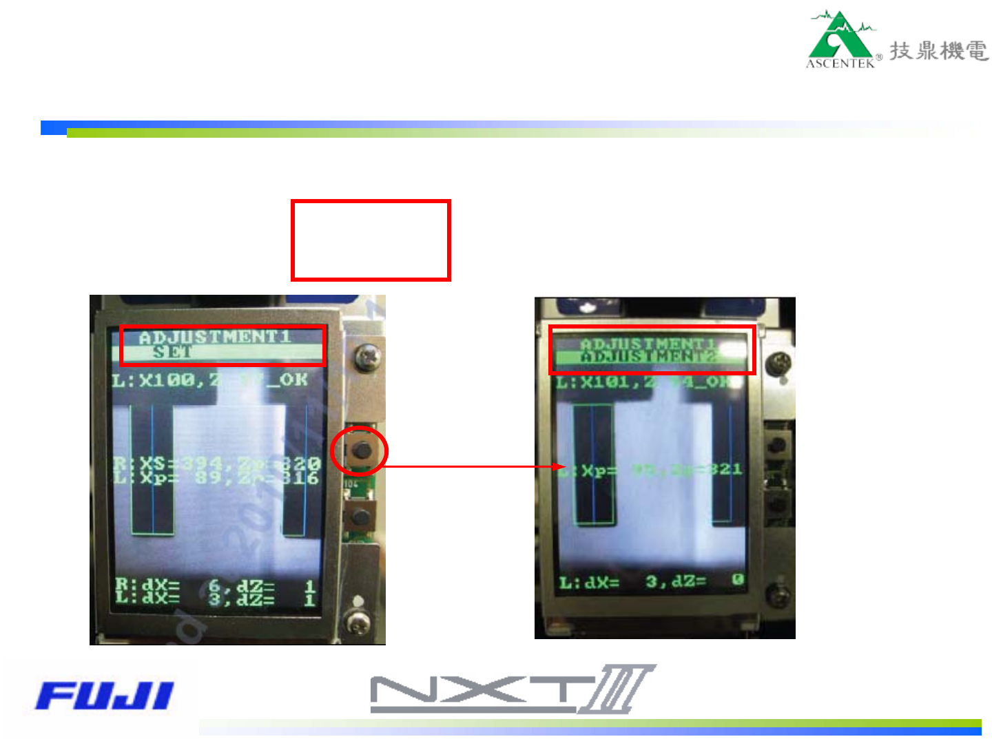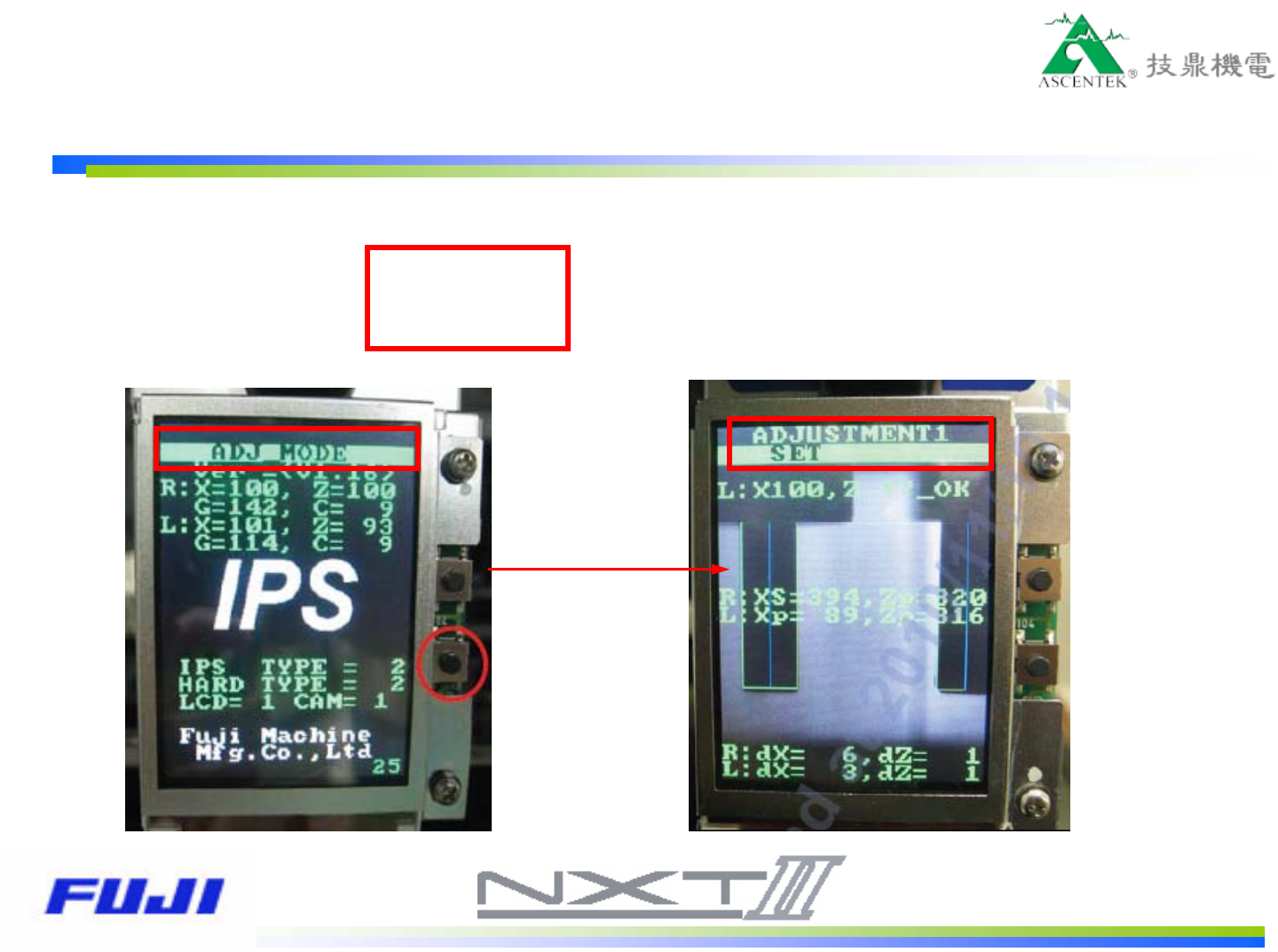 2.按下鍵1次,進入到ADJUSTMENT 1畫面