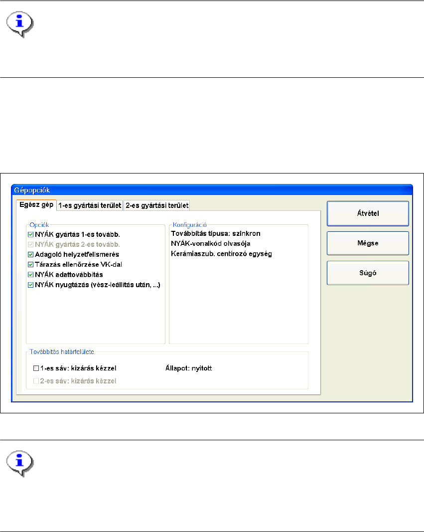 Csak azok a gépopciók láthatók, amelyeket a használt állomáson konfiguráltak. 3