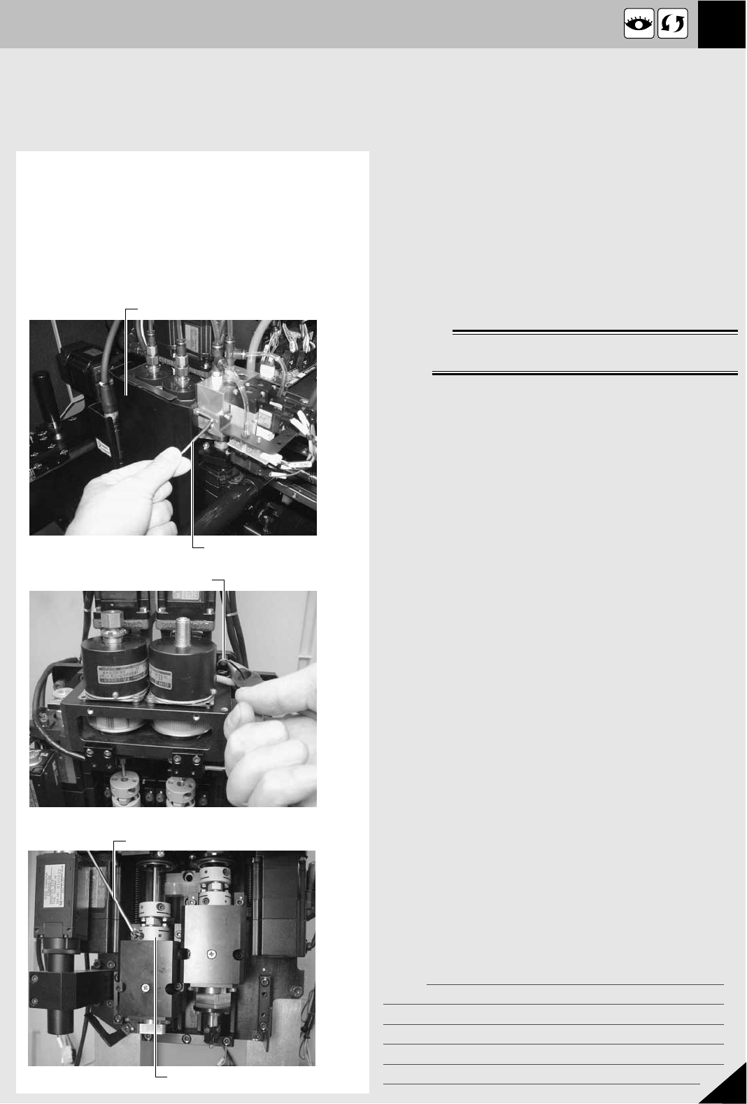 14 メモ 5 Section JMC4011102 4 . R 軸シャフトの交換 R 軸シャフトの先端部が折れたり、曲がってしまった場合は、交換が必要です。下記の手順で交換してください。 ■ 用意するもの ・ 六角レンチセット ・ 専用スパナ ・ ラジオペンチ ・ 新しい R 軸シャフト ■ 交換手順 w 警告 作業を始める前に、マシンの電源スイッチがOFFになっていることを 確かめてください。 1 ヘッド部のカバーを取り外します。 …