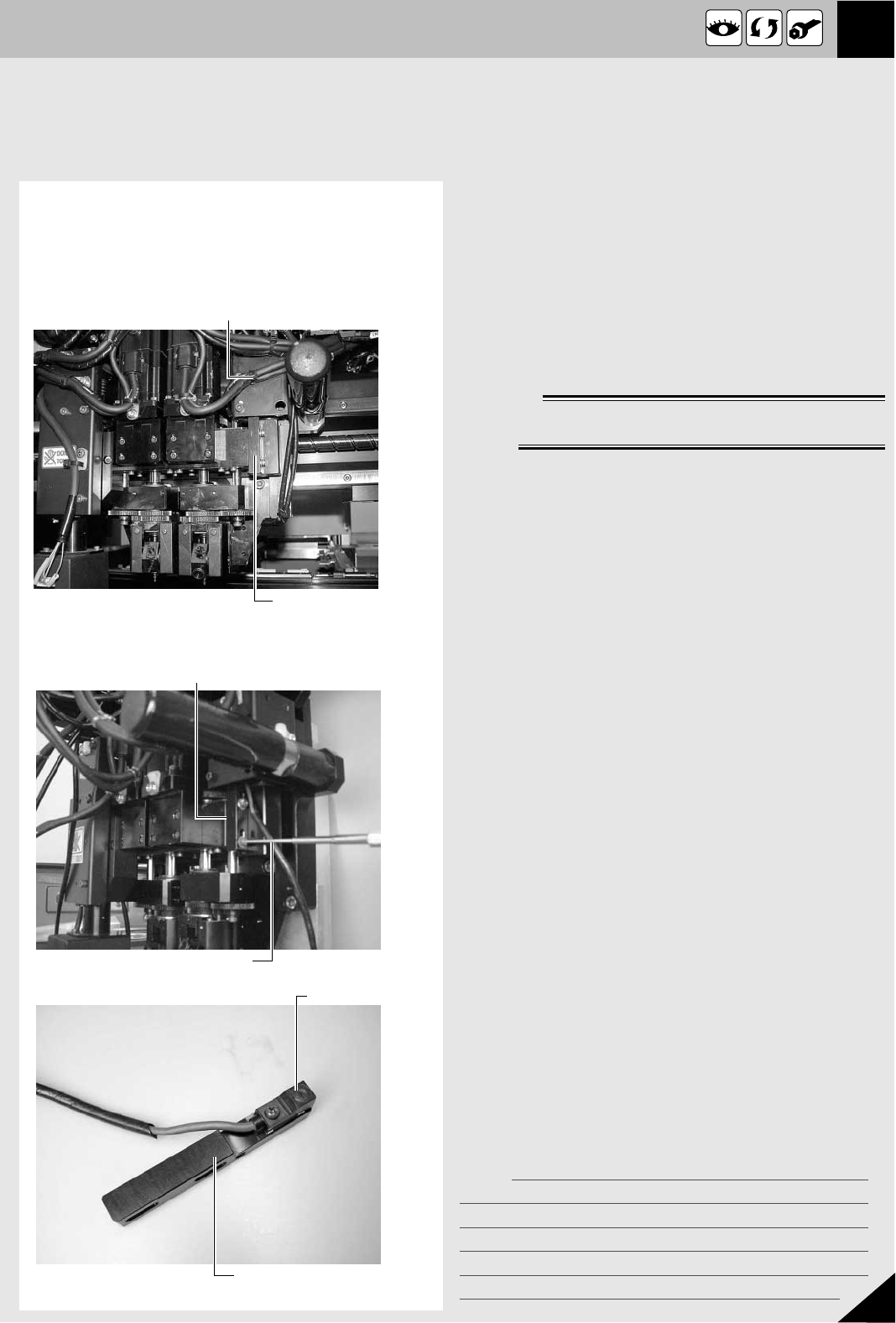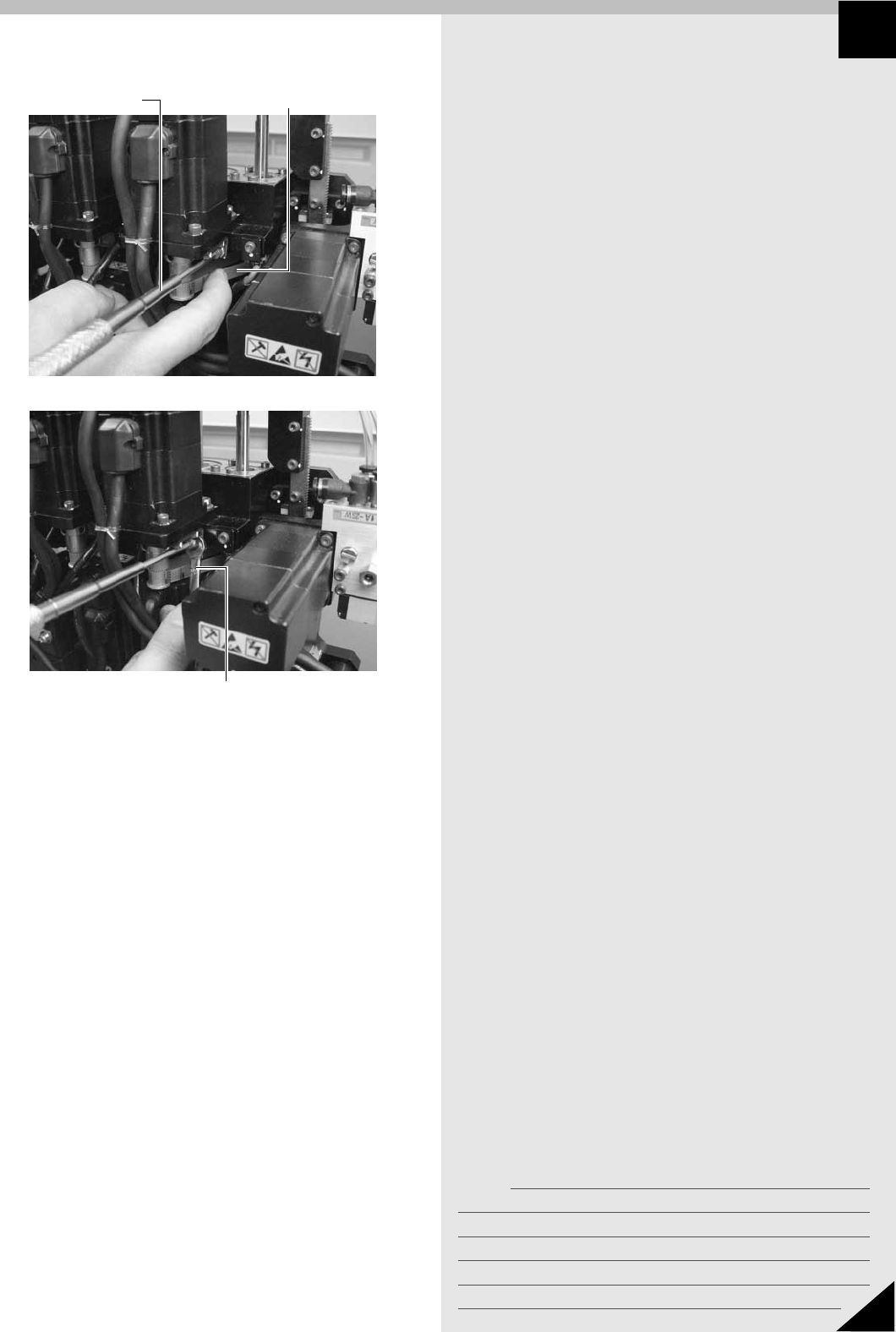 メモ 22 2 Section JMC4011102 5. N 軸ベルトの交換 Step 12-1 Step 12-2 5.5mmスパナ ベルトテンションを確認する 六角レンチ (2.5) w ベルトのテンションを張ります。 1 . 六角レンチ (2.5) でベルトテンショナーボルトを ゆっくり締めていきます。 ベルトの中央部を押して弾力 ( 3 ∼ 5 m m 程度のた わみ) があることを確認してください。 2 . 六角レンチ…