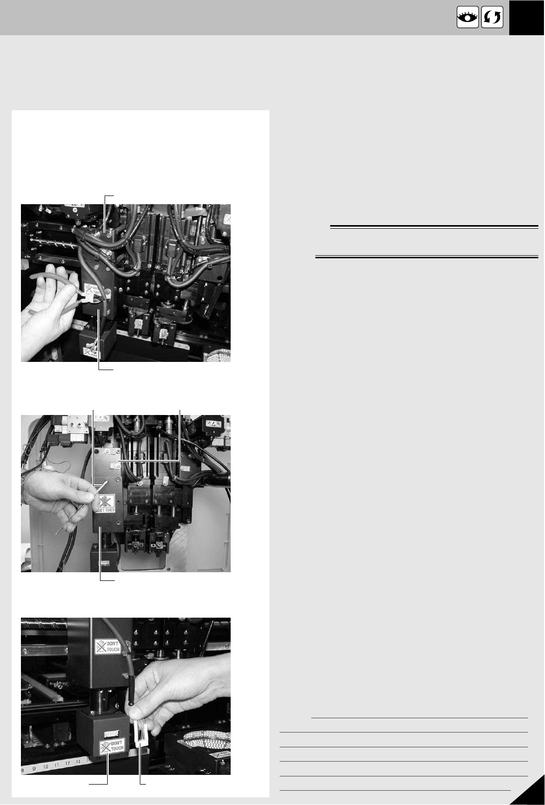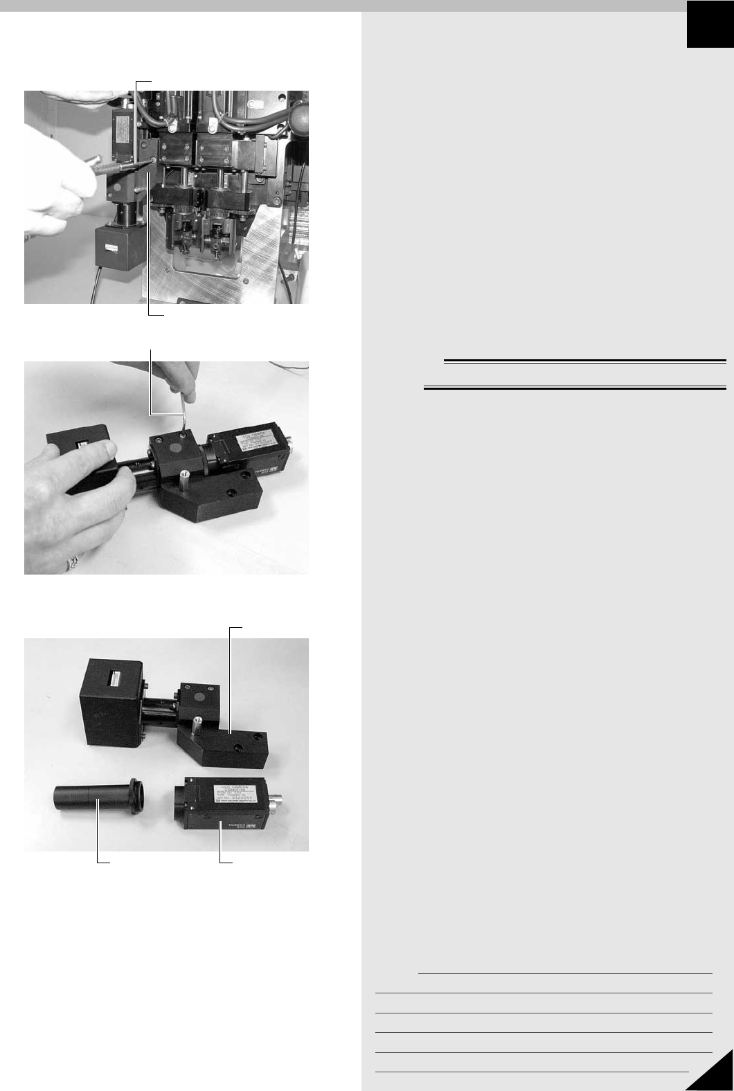メモ 3 3 Section JMC4011102 1. 移動カメラの交換 5 移動カメラをホルダーごと取り外します。 移動カメラホルダーのボルト 2 本を六角レンチ ( 3 ) で外し、カメラをホルダーごと取り外してください。 6 移動カメラをホルダーから外します。 カメラのレンズ鏡筒を締め付けているボルト 2 本を 六角レンチ (2.5) で緩め、カメラをカメラホルダー から抜いてください。 7 レンズをカメラから取り外し、新しいカ…