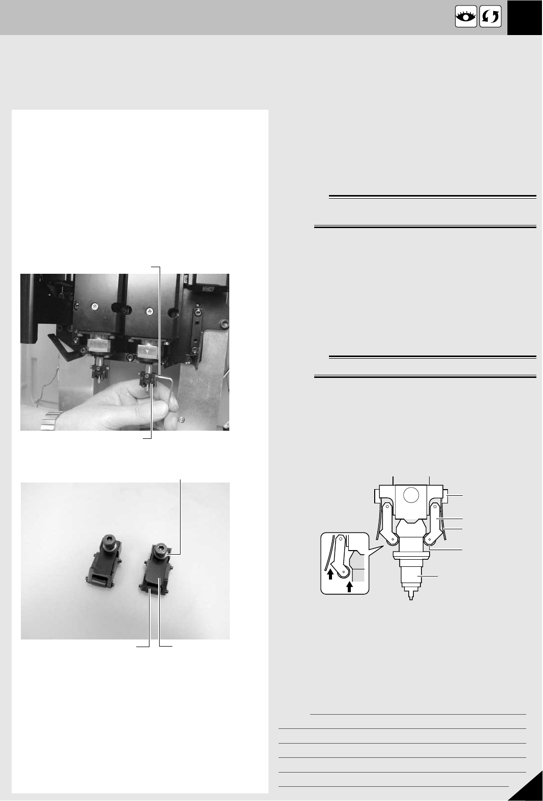 21 メモ 5 Section JMC4011102 6 . ノズルアーム A S S Y の交換 ノズルアーム ASSY が壊れたときは、ペアで交換してください。 ■ 用意するもの ・ 六角レンチセット ・ 新しいノズルアーム ASSY ■ 交換手順 w 警告 作業を始める前に、マシンの電源スイッチがOFFになっていることを 確かめてください。 1 ノズルアーム ASSY を取り外します。 六角レンチ (1.5) で取り付けボルトを外…
