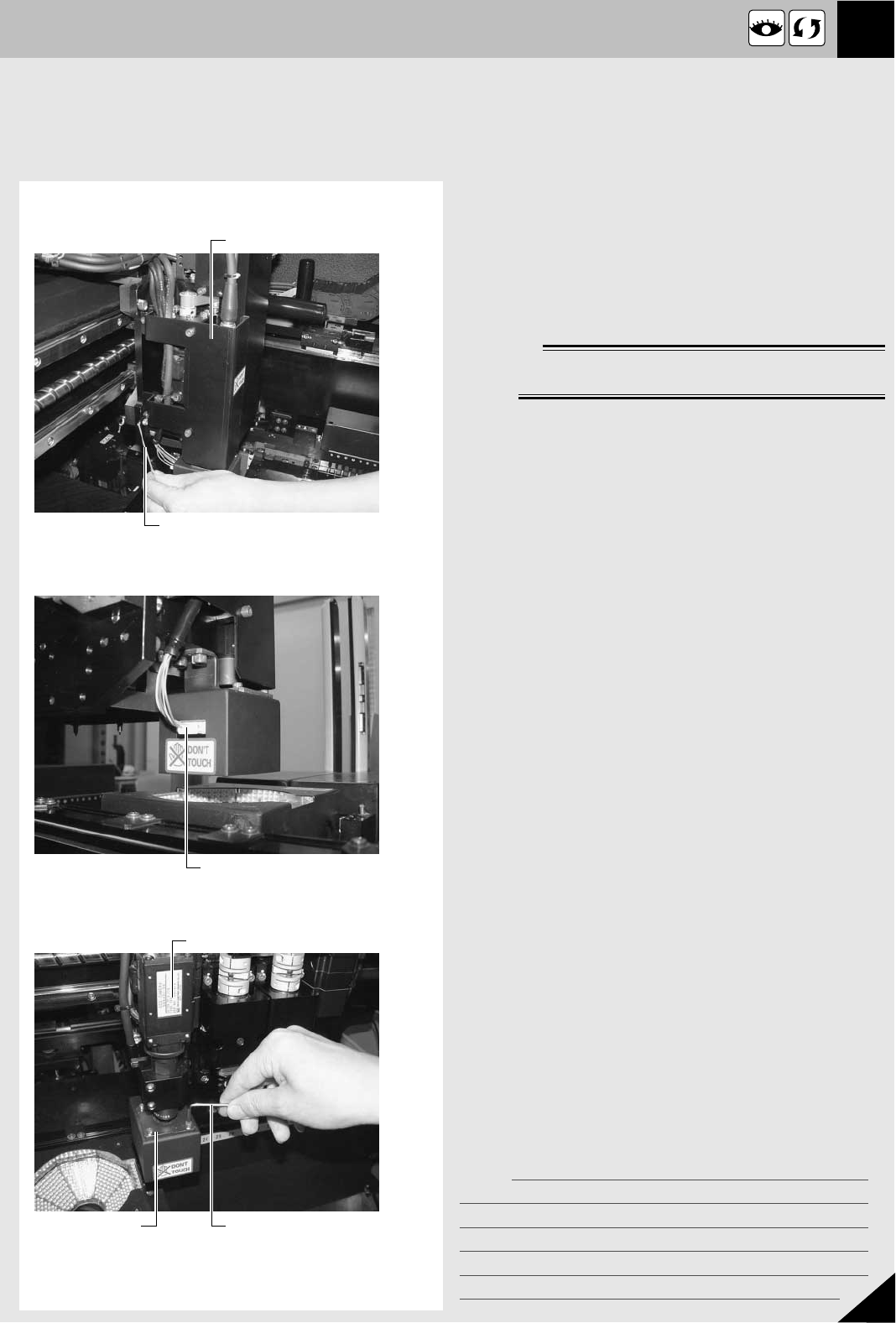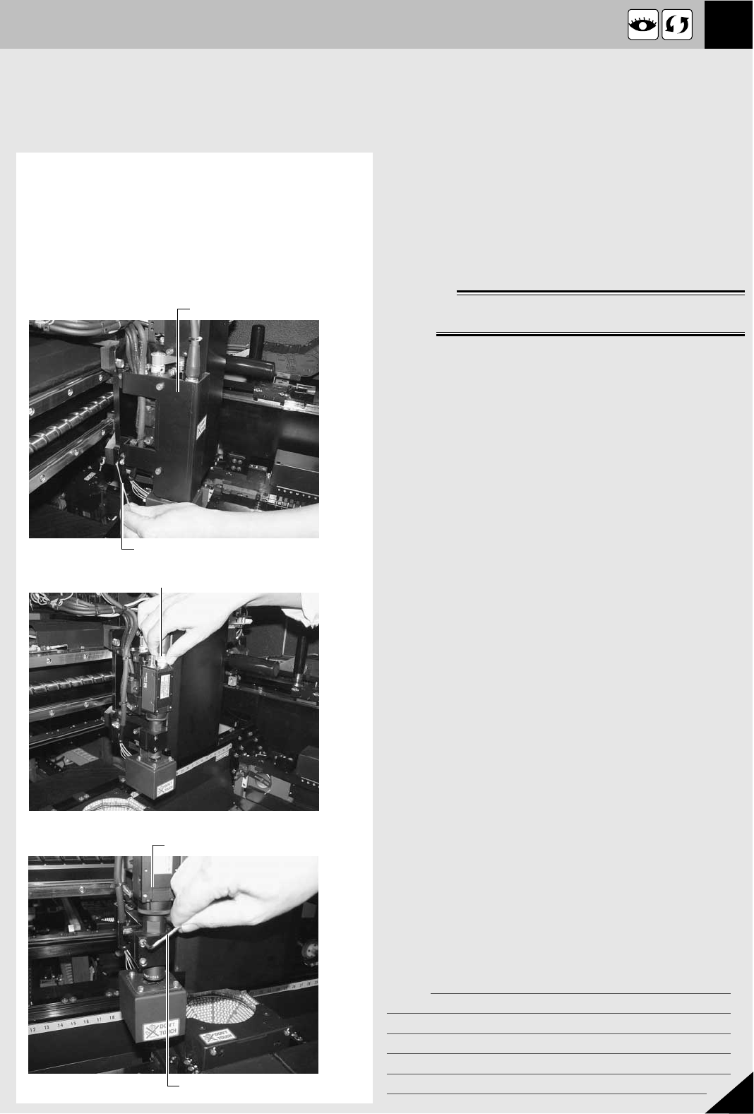 メモ 3 6 Section JMC4011102 1. YV88X-S カメラ部品の交換 4 レンズ鏡筒をカメラから取り外します。 レンズ鏡筒はねじ込み式ですので、左に回して緩め て取り外してください。 5 新しい移動カメラに取り外したレンズ鏡筒をね じ込みます。 6 新しい移動カメラを取り付けます。 レンズ鏡筒をクランプ部に入れて、S t e p 3 で緩めた ボルト 2 本を締めてください。 c 注意 カメラは、カメラのシールが正…
