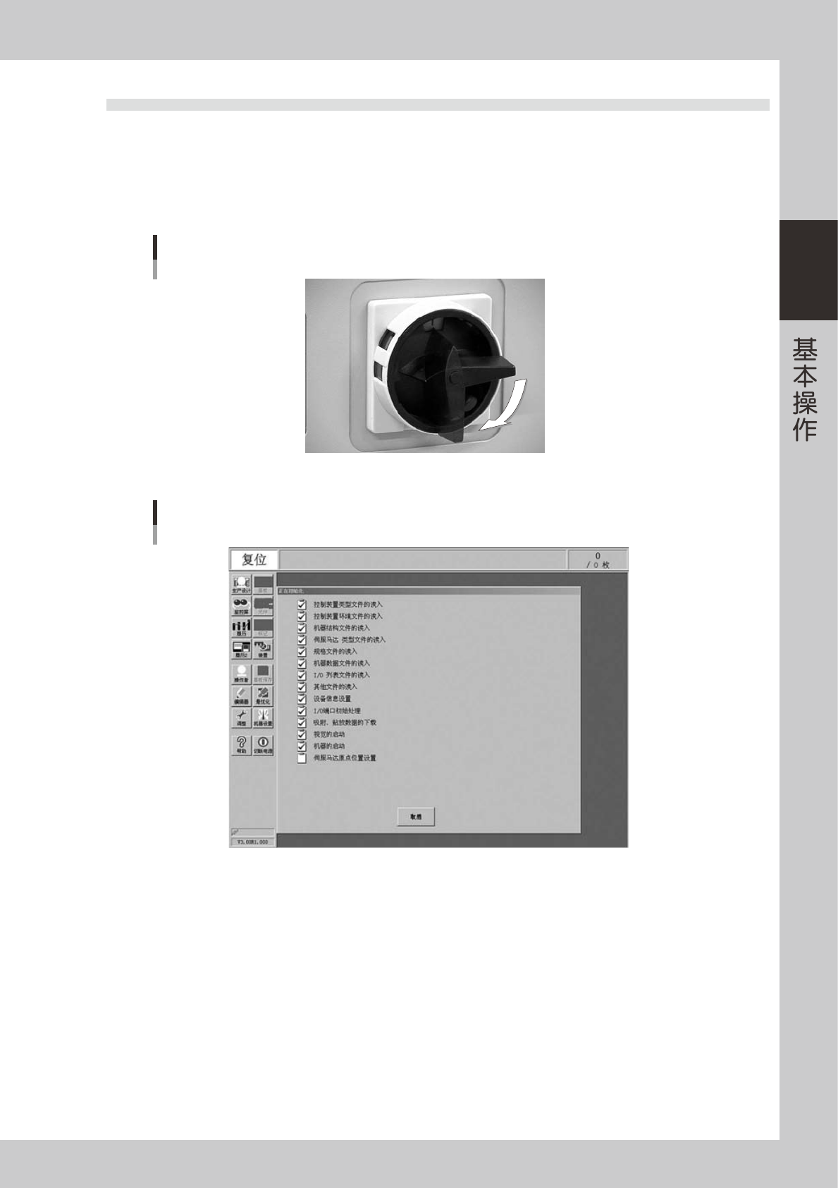 有关作业前的点检项目和机器的启动方法,参阅本章「3.1 作业前的点检」的内容。