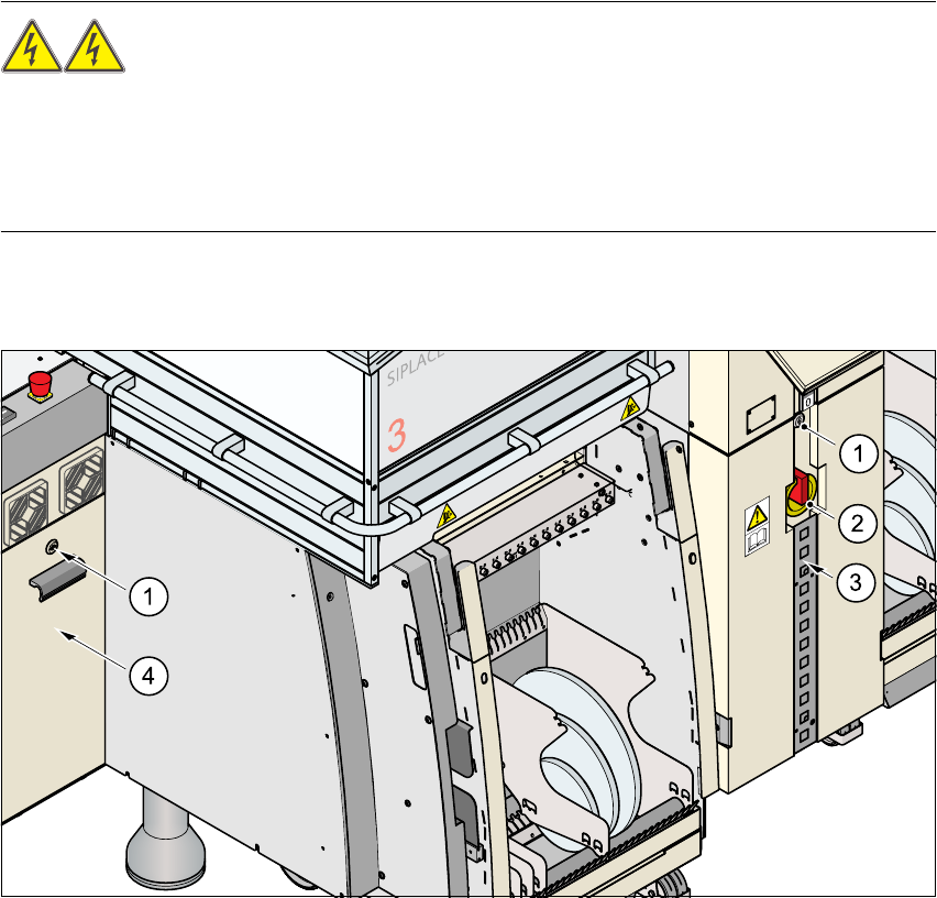 → 电源单元和轴单元的挡板只能由具有适当资格和接受过培训的人员打开。