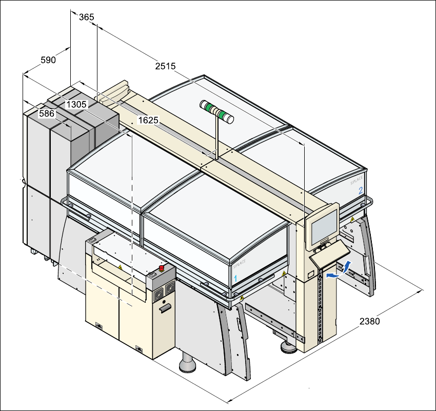带有矩阵式料盘交换器的贴片系统尺寸,用毫米表示