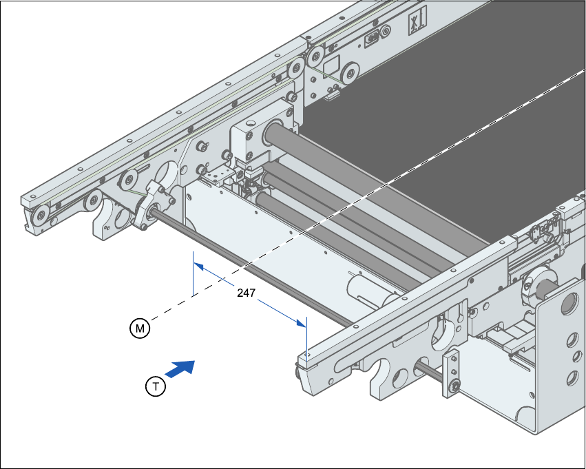 用户手册 SIPLACE HF 4 安装和试运行 软件版本 SR.504.xx 2003 年 7 月中文版 4.2 贴片系统的尺寸 141 4.2.2 PCB 传送导轨右侧和贴片机中心的距离 4.2.2.1 单传送导轨 4 图 4.2 - 4 PCB 传送导轨右侧和贴片机中心的距 离,用毫米表示 (单传送导轨) 4 M 贴片机中心 T PCB 传送方向