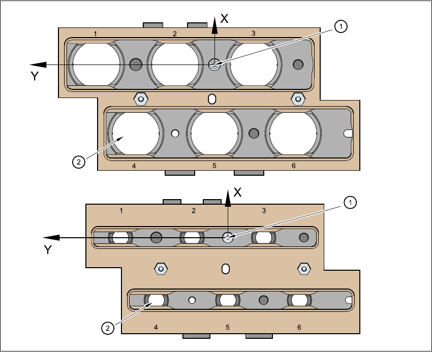 位置 1 和 3(见图 7.1 - 16 中的 1 和 5)可安装一个吸嘴交换器。这样一来,8 个标准吸嘴盘和 4