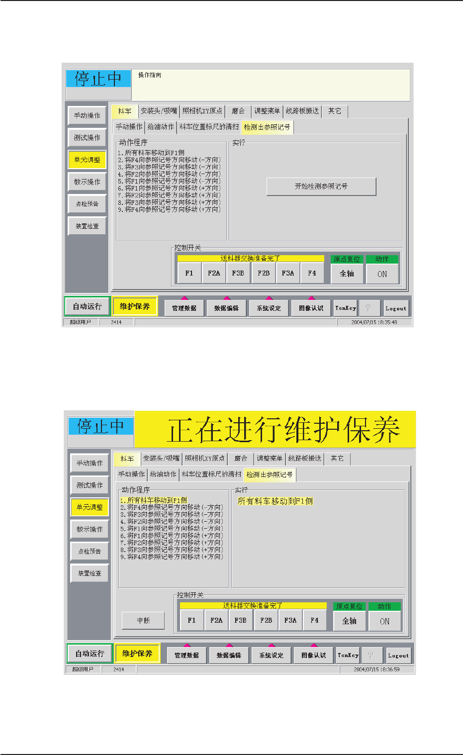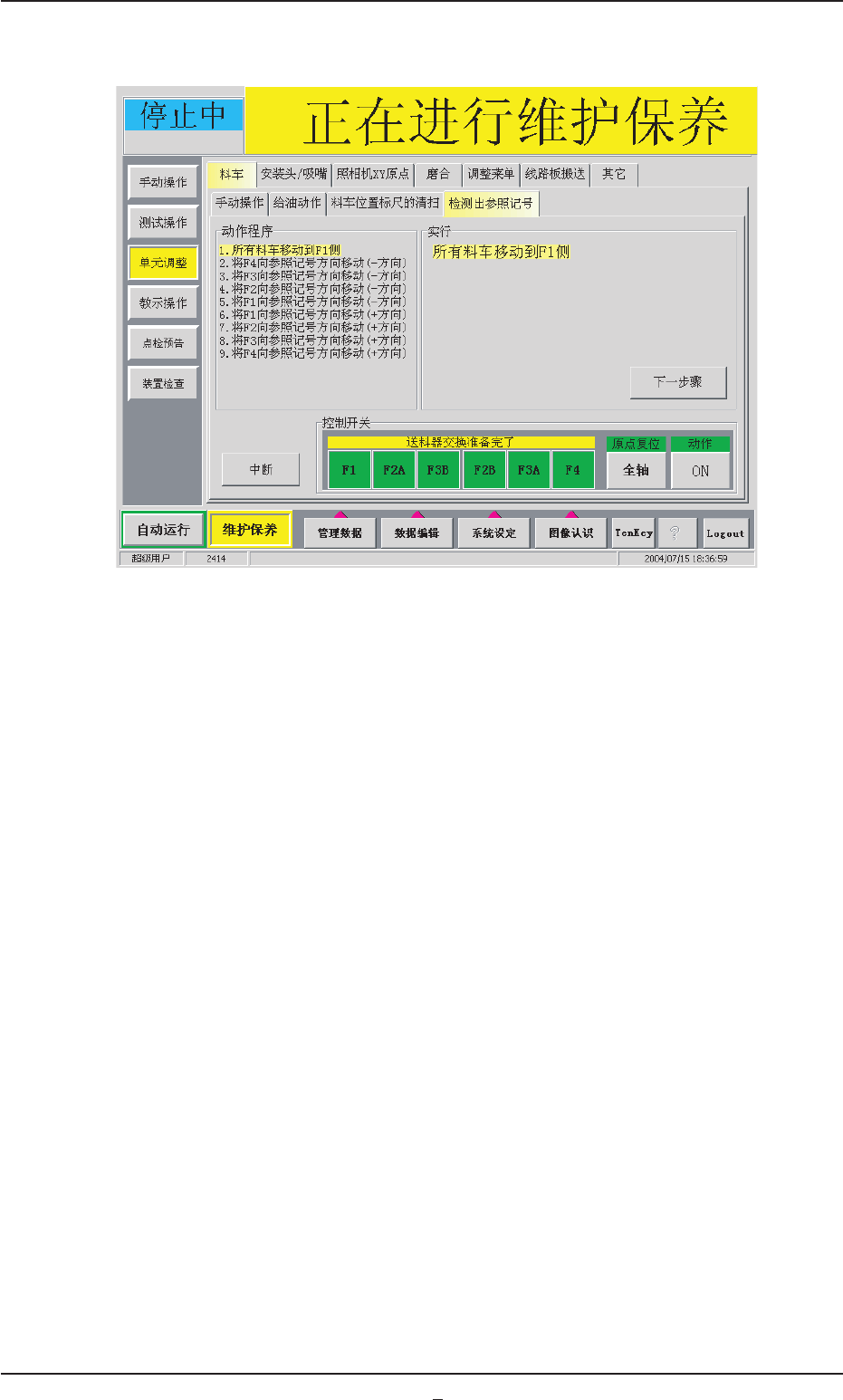 (9)接通操作电源,实施 “ 检测出参照记号 ” ,进行料车动作确认。