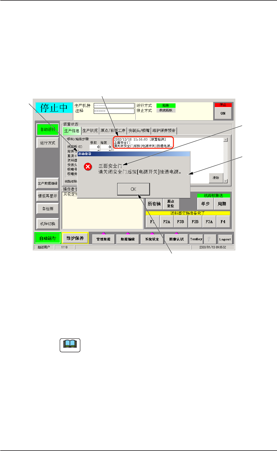 请关闭安全门并解除生产安排方式。请关闭安全门并解除生产安排方式。