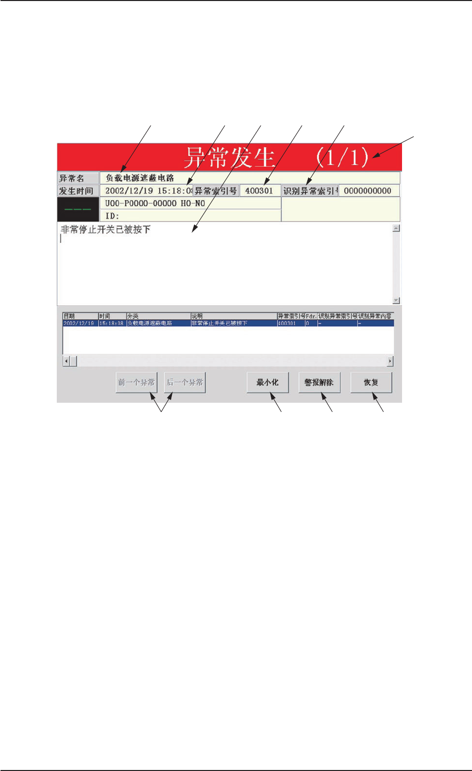 (1)请备份异常显示 “ 异常索引号 / 异常名 / 说明 ”。