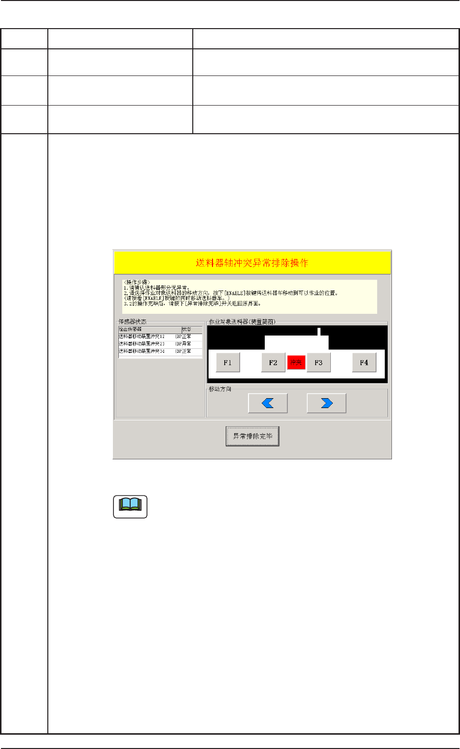 (复原方法 1) 按[ 恢复] 按钮,显示如下 “ 送料器轴冲突异常排除操作 ”界面。