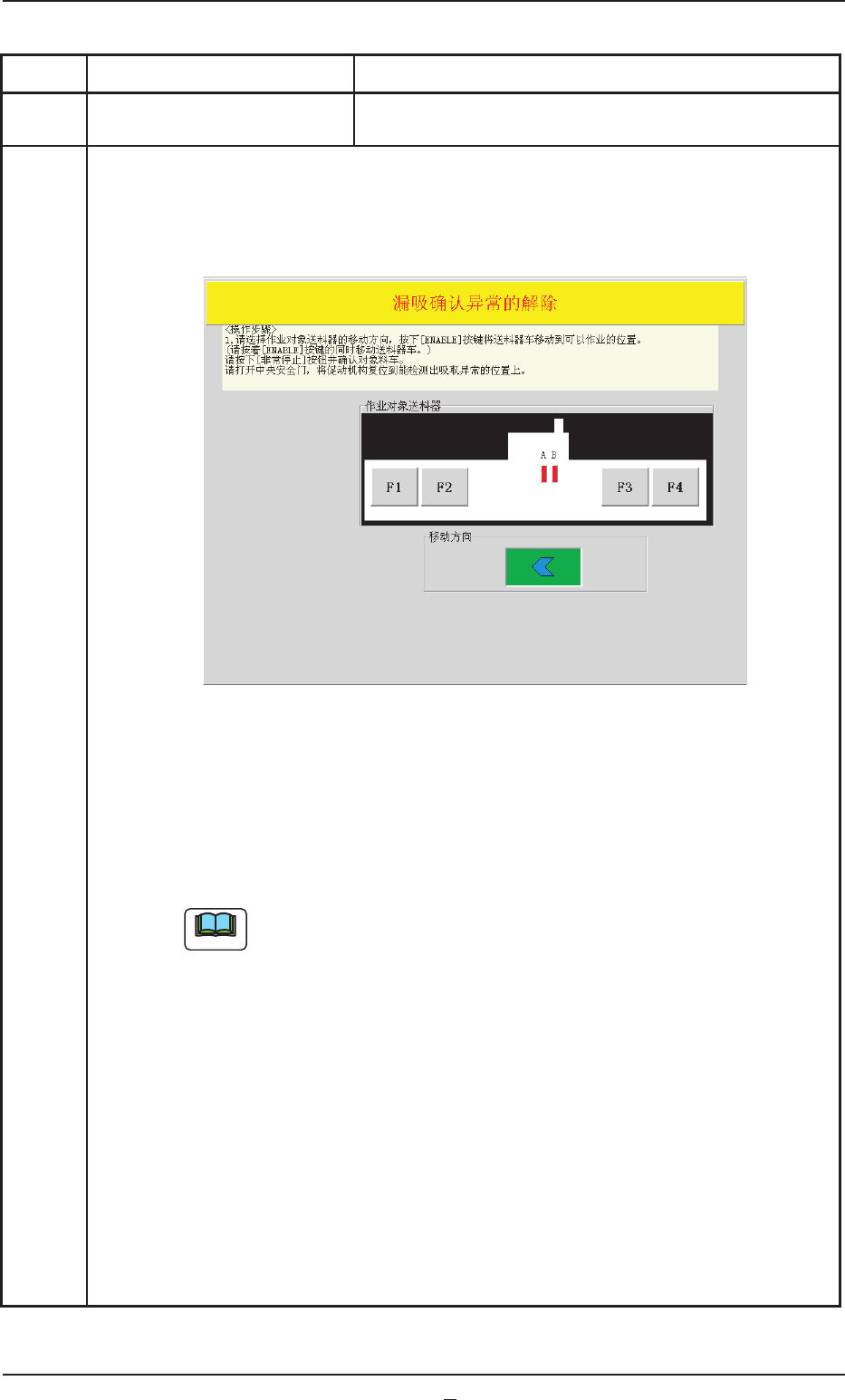 在[F4]发生漏吸的情况,无法向送料器作业区安全门移动。
