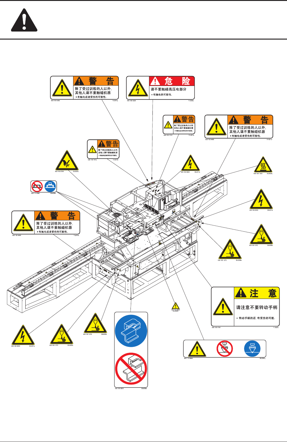 • 粘贴此标签的位置使用高电压,请勿触碰,以免触电。