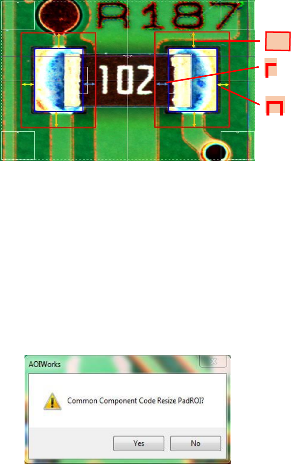 单击 "是" 按钮可将相同面板上所有零件的 roi 调整为相同大小的通用零件代码。