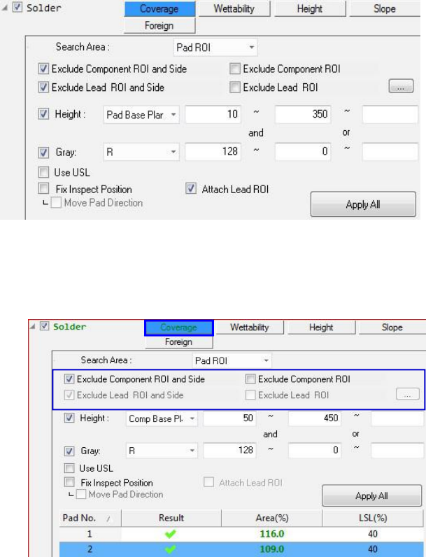 用户选择了 pad ROI, 该算法将检查基于 pad 的焊料。另一方面, 如果用户选择焊料 roi, 该算