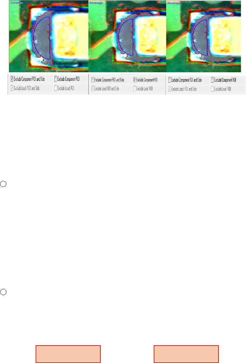 "排除零件 roi" 还是 "排除 Lead roi" 选项, 都有必要确定检查焊点的区域。"排除零件 roi 和侧