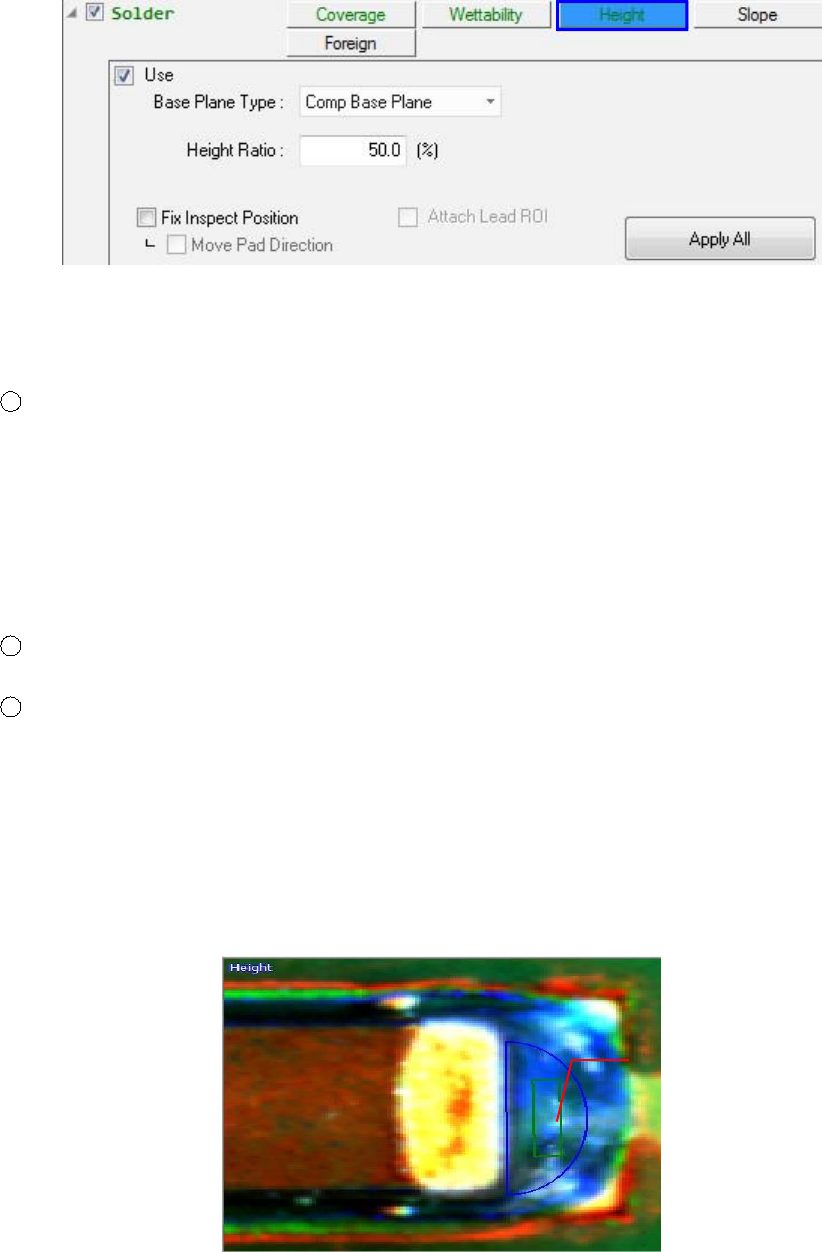 创建 "焊料高度 ROI"。焊点高度 ROI 的大小和位置是可修改的, 检查将根据用户选择的