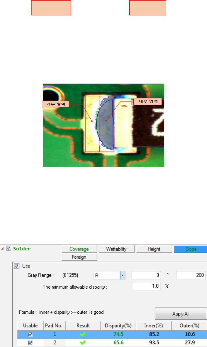 的视差低于输入值, 算法认为是好的。假定计算出的内部焊点结果比外焊接头的结果低 5%,