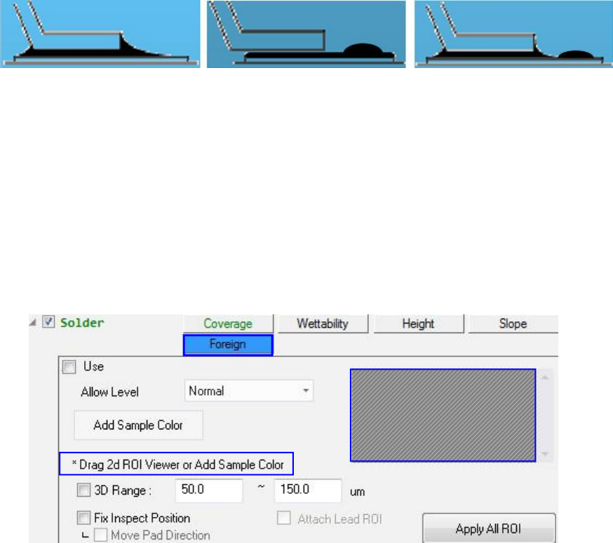 与 其他四 焊 点 检测 算法相同 , 除了 " 覆盖 检查 " 、 " 焊 料 联 合外 检 " 也是一 种 可供用 户选择 是否使用的 可 选检测 算法。 用 户 可以在 " 外部 检查 " 操作之前自 定 义颜 色以 检测为 NG 。有 两种颜 色注 册 方法。首先 , 通 过 鼠 标 拖 动 " 零件 ROI 2D 查 看器 " 。第 二 , 点 击…