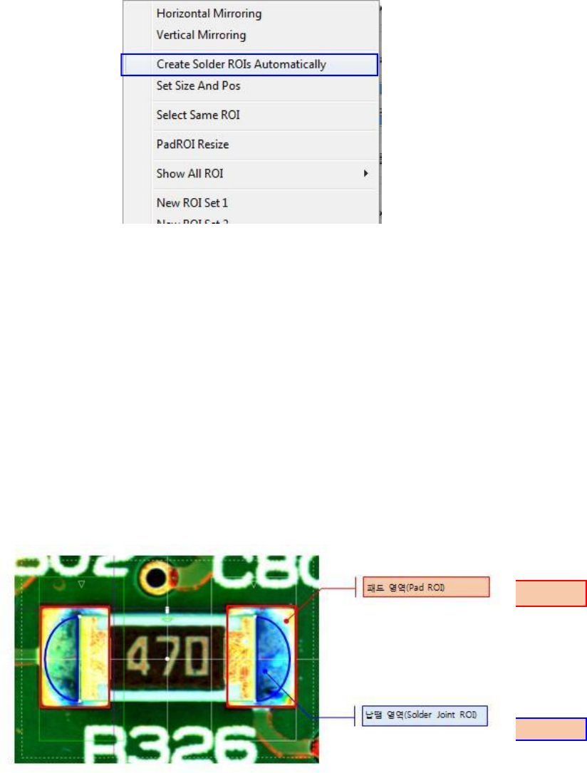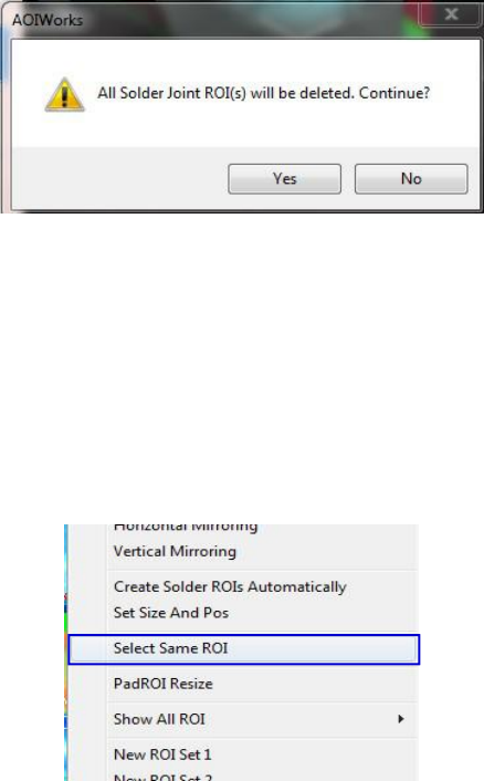 在菜单列表中选择 "自动创建焊锡 roi" 来显示。单击 "是" 可在删除现有 roi 的同时重新创建