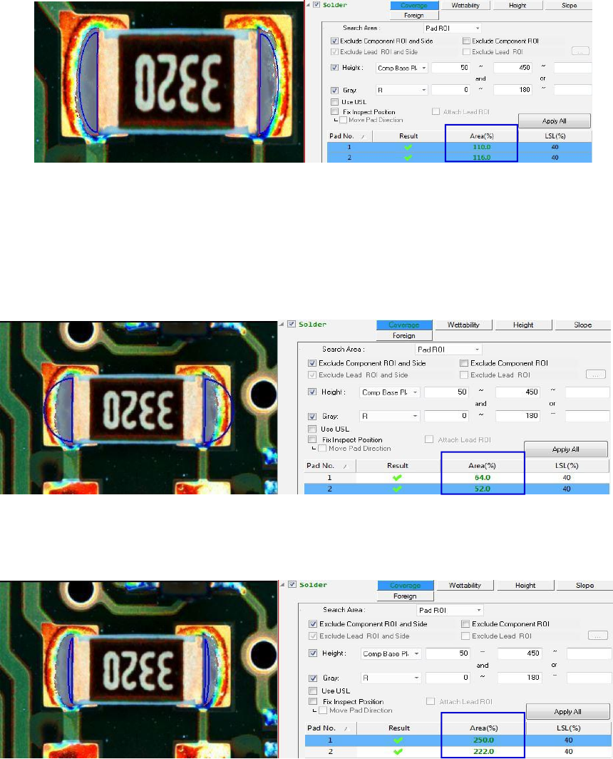 焊点尺寸, 当焊点 roi 太大时, 以及当焊点产生的 roi 太小时。