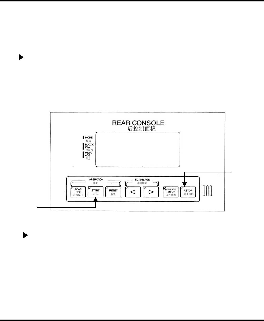 键,机器便继续在机器停止之前未完成的零件供应,然后再按下<START>键,机器将恢复操作。