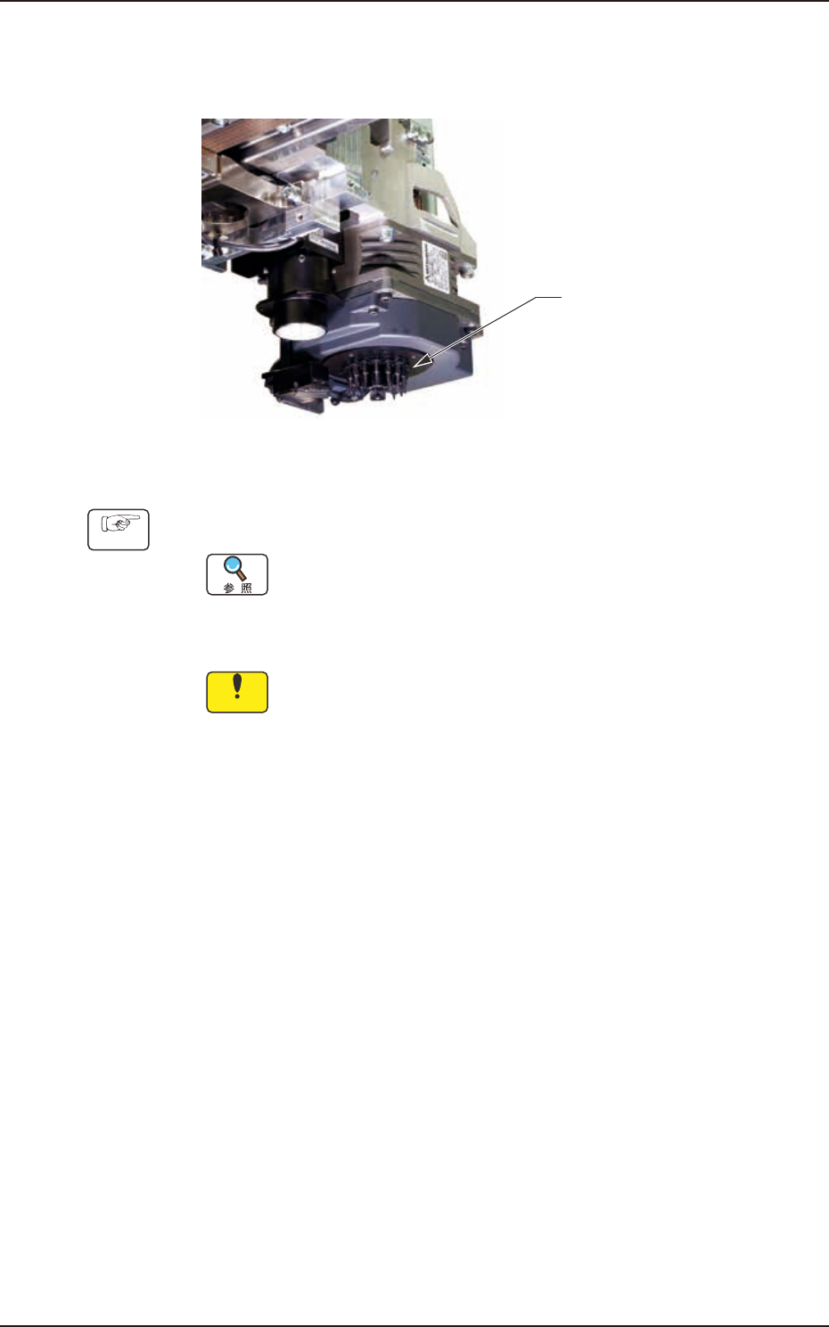 4OM-1839 1-4-28 1603-001 4.7 ヘッド部 4.7.3 拡散板の清掃 周期:毎月(所要時間 5 分) 拡散板 Fig. 4A4-36 手順 (1) すべてのノズルを画面操作にてノズルストッカに収納する。 ノズルの収納手順については、 “第 2 巻 6 章 5. ノズル交換画面” を参照してください。 (2) レンズクリーナクロスで乾拭きする。 注 意 拡散板へ表面に皮脂や油などを付着させないでください。