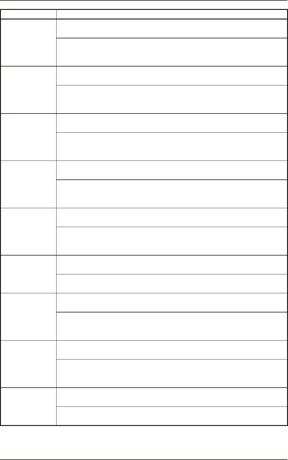 異常 ID 異常名、説明、要因および復帰方法