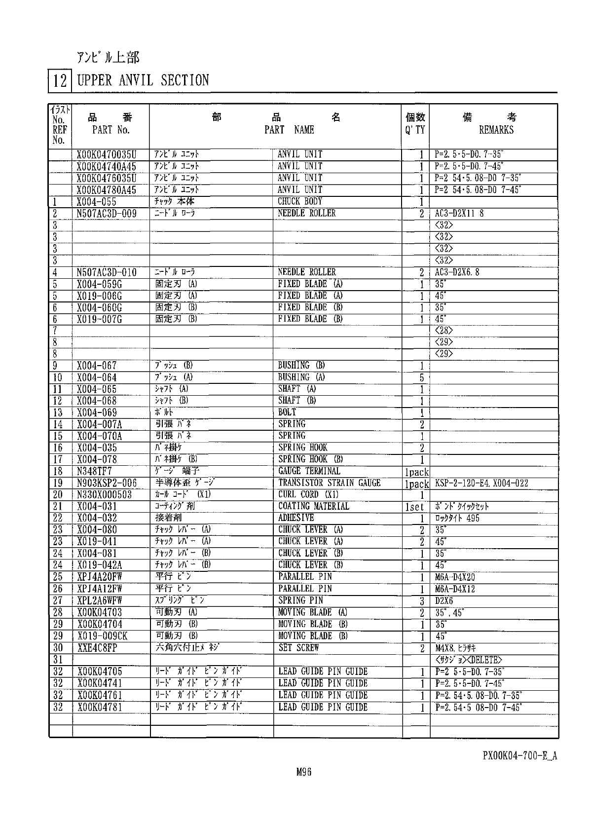 7 > e 几上部 n \ UPPER ANVIL SECTION 10 23 PX 00 K 04 - 700 - E _ A M 95