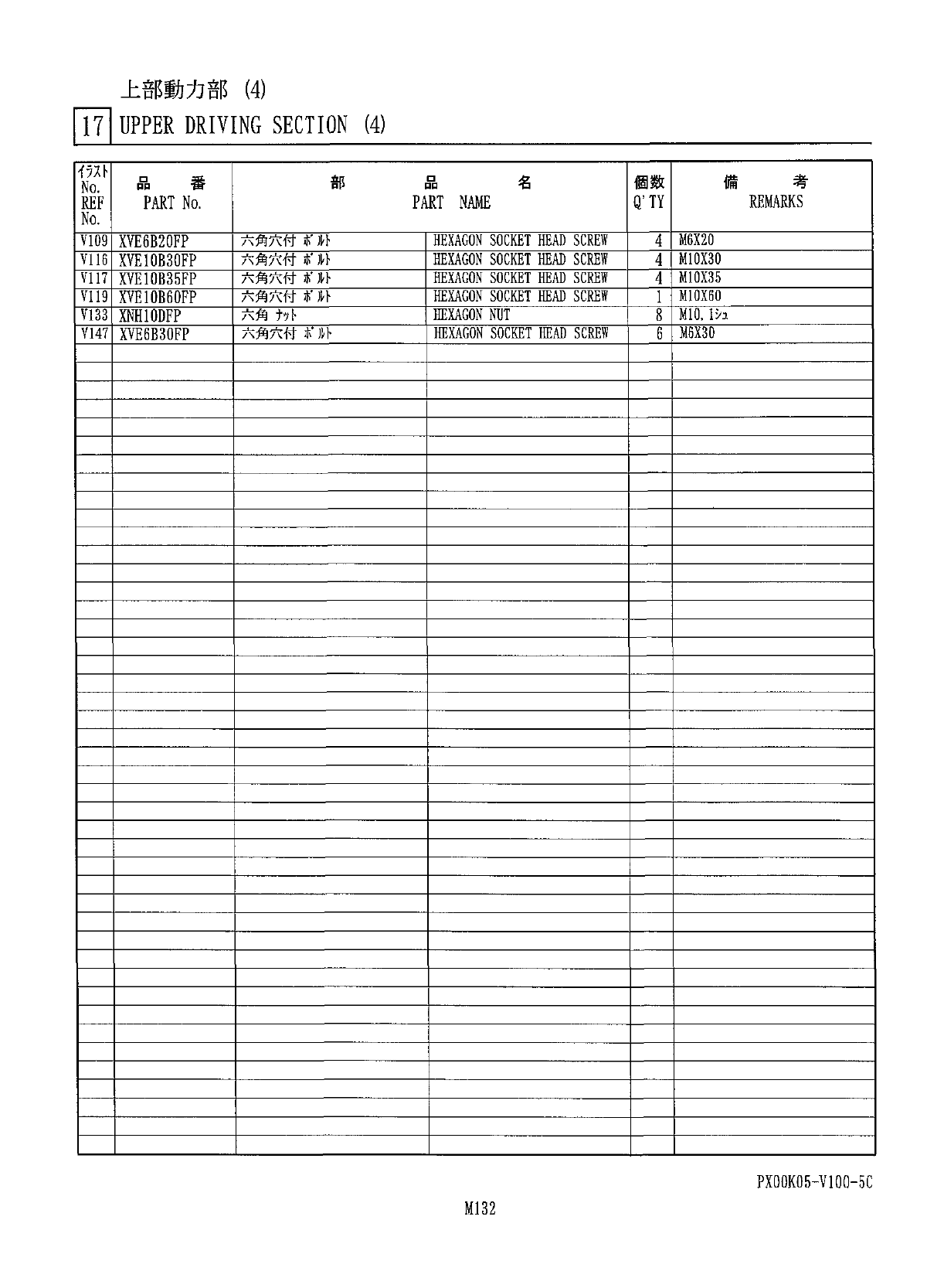 上 部 動 力 部 ⑷ 171 UPPER DRIVING SECTION ( 4 ) V 116 V 116 V 119 V 117 V 133 V 133 % V 109 PX 0 QK 05 - V 100 - 5 C M 131