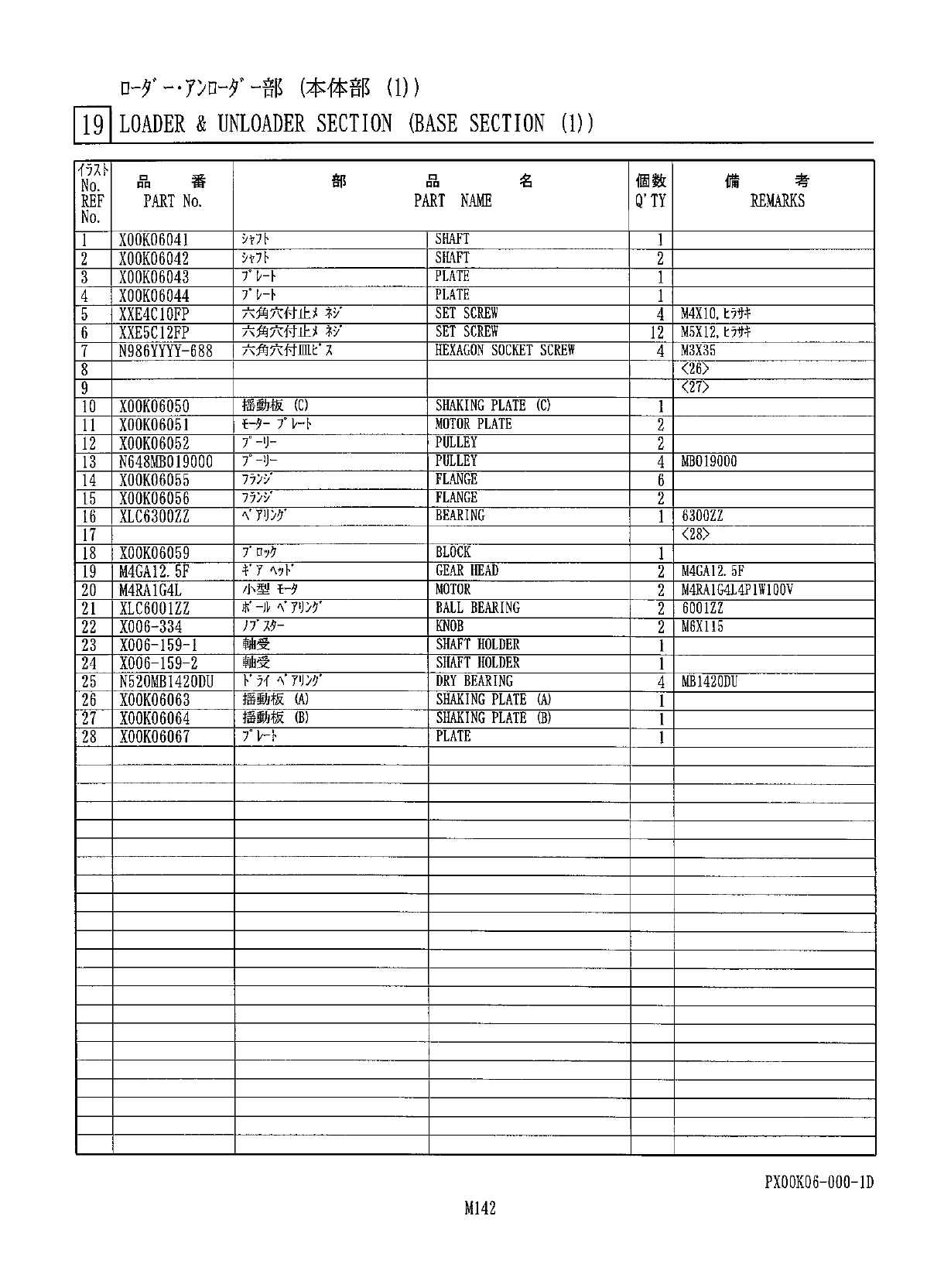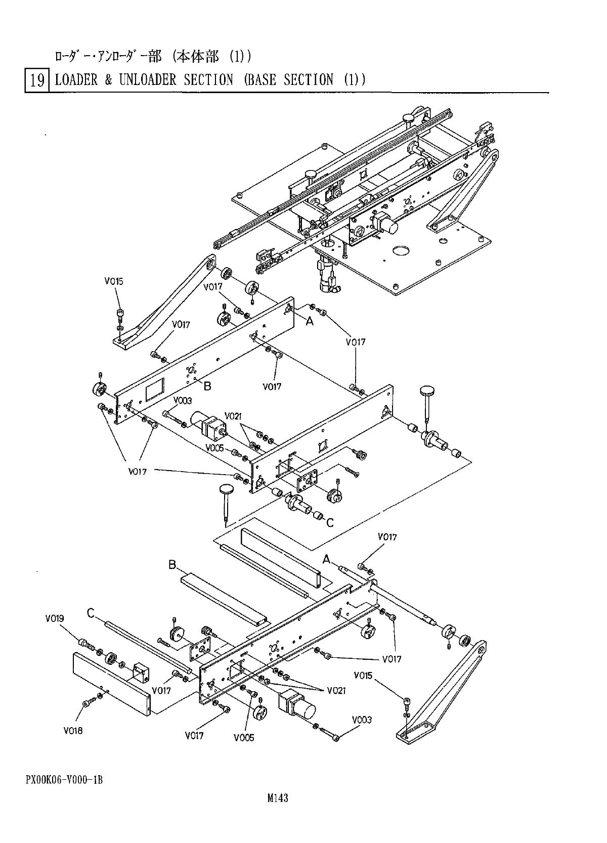 口一夕 ' ' - 夕 部 ( 本 体 部 ⑴ ) 1 ^ 1 LOADER & UNLOADER SECTION ( BASE SECTION ⑴ ) V 015 V 017 V 017 V 019 Y 018 V 017 V 005 PX 00 K 06 - V 000 - 1 B M 143