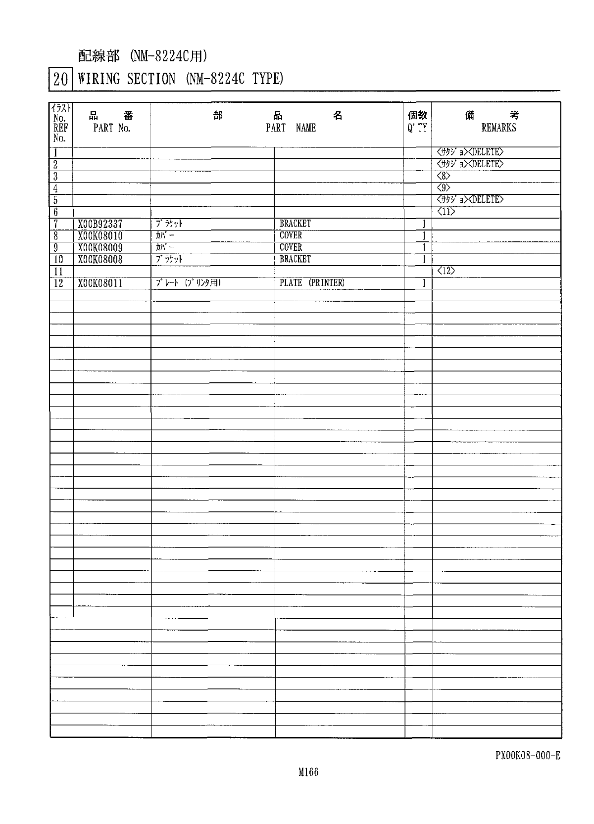 配線部 ( NM - 8224 C 用 ) 20 l WIRING SECTION ( NM - 8224 C TYPE ) PX 0 QK 08 - 000 - E