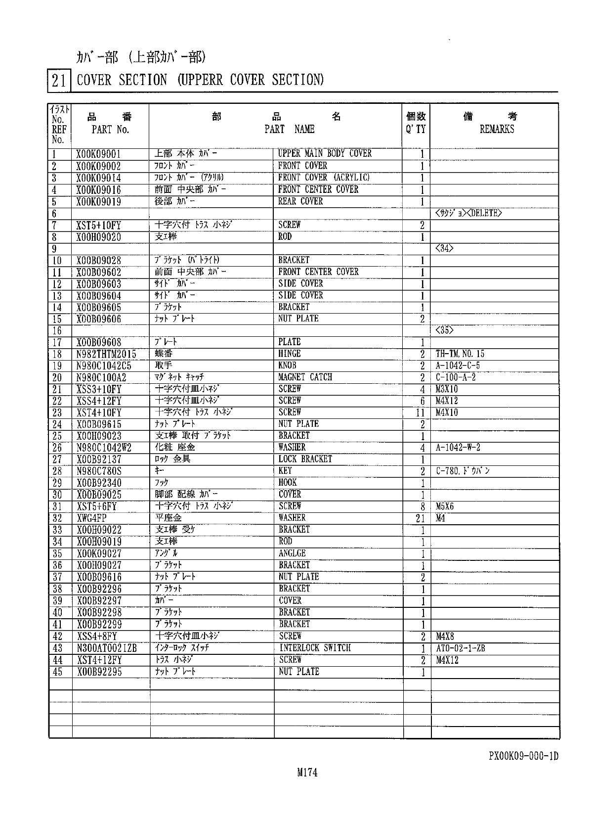 力 ■ 部 ( 上 部 力 部 ) n \ COVER SECTION ( UPPERR COVER SECTION ) 30 9 45 39 42 PX 00 K 09 - 000 - 1 D M 173
