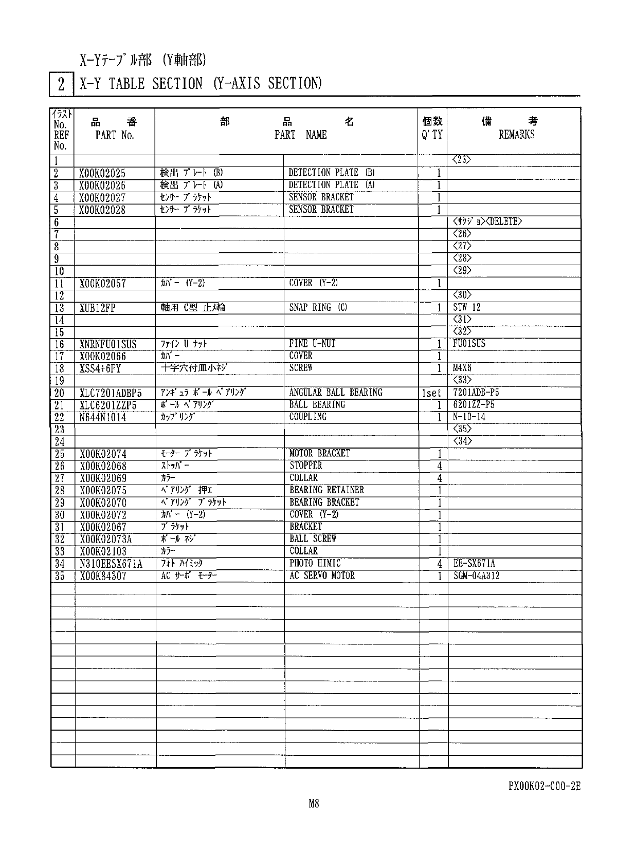 X - Y 亍 - 7 ' 、 鄕 ( Y 軸部 ) Y 1 X - Y TABLE SECTION ( Y - AXIS SECTION ) 個数 考 備 部 名 番 品 品 No . Q , TY REMARKS PAST NAME REF PART No . No . DETECTION PLATE ( B ) 検出 7 ° V - t ( B ) 2 X 00 K 02025 検 出 T V - h W DETECTI…